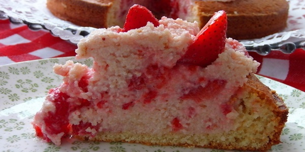 Napomena:Osim jagoda mozete koristiti i druge vrste voca .breskve ,marelice ,visnje i sl.U dublju zdjelu stavite jaja i šećer izradite ih pjenasto .Dodate jogurt/kiselo vrhnje pa izmješajte zajedno da se poveže. Zajedno pomiješate griz,brašno ,prstohvat soli i pecivni prašak pa sve zajedno dodate u smjesu na kraju dodate otopljeni maslaca.Dobro promiješate pa sve stavite u kalup za torte/22cm /koji se prije toga premarali maslacem i lagano po brašnili.Pecite u zagrijanoj pećnici na 200C/oko 35 min/ provjerite čačkalicom.